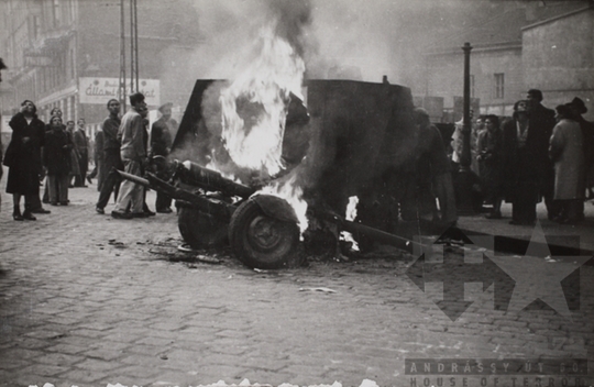 utcakép harckocsi szovjet BTR-152 harcjármű felkelő Rákóczi út Akácfa utca Budapest Tomecskó FrigyesFotó részletei