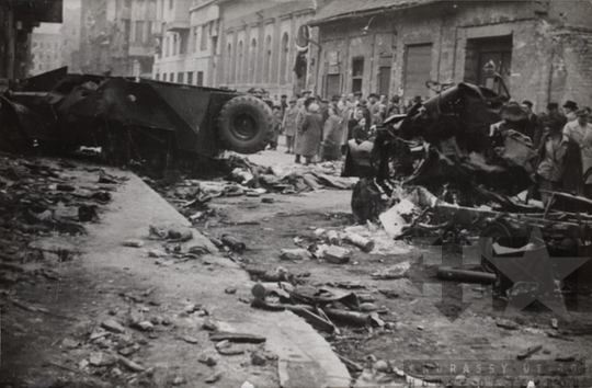 holttest katona szovjet BTR-152 harcjármű utcakép roncs harckocsi Práter utca Futó utca Budapest Tomecskó FrigyesFotó részletei