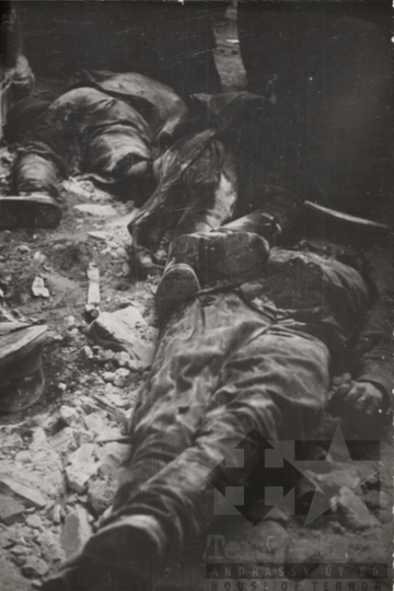 holttest lincselés karhatalom ÁVH pártház ostrom katona egyenruha Köztársaság tér Budapest Tomecskó FrigyesFotó részletei