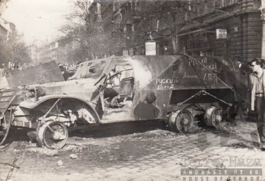 szovjet BTR-152 harcjármű roncs felirat József körút Budapest