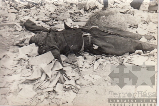 holttest lincselés katona karhatalom ÁVH egyenruha pártház ostrom Köztársaság tér BudapestFotó részletei