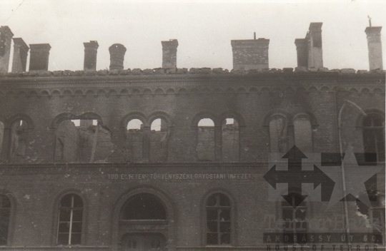 Patológiai Intézet romjai az Üllői úton. Felirat a homlokzaton: "Tud. Egyetem Törvényszéki Orvostani Intézet"