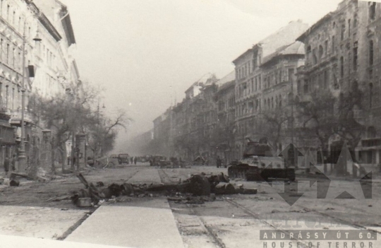 szovjet T-34/85 harckocsi roncs utcakép József körút BudapestFotó részletei